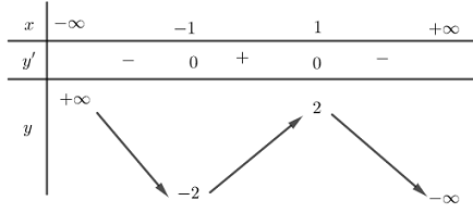 \(\begin{array}{l}f\left( x \right) = - {x^3} + 3x\\ \Rightarrow f'\left( x \right) = - 3{x^2} + 3 = - 3\left( {x - 1} \right)\left( {x + 1} \right)\\f'\left( x \right) = 0 \Leftrightarrow \left[ \begin{array}{l}x = 1\\x = - 1\end{array} \right.\end{array}\)
