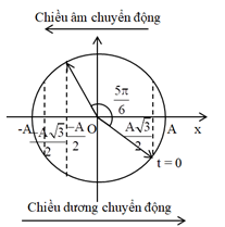 Từ vòng tròn lượng giác, ta thấy tại thời điểm vật có gia tốc 100π cm/s2 lần đầu tiên, vecto quay được góc \(\dfrac{{5\pi }}{6}\,\,rad\)