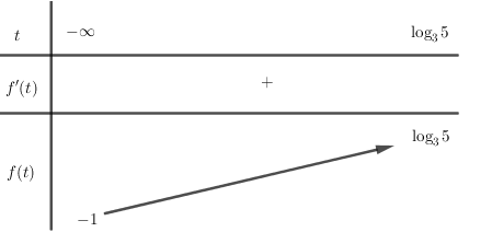 $f'(t) = \dfrac{{{{\log }_3}5 + 1}}{{{{({{\log }_3}5 - t + 1)}^2}}} > 0,\,\,\forall t \in \left( { - \infty ;{{\log }_3}5} \right]$