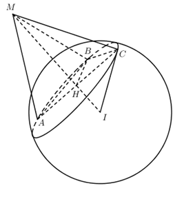 Tính độ dài đoạn thẳng IM với I là tâm mặt cầu.
