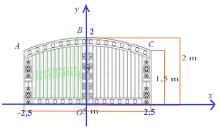 Ba Tí muốn làm cửa sắt được thiết kế như hình bên. Vòm cổng có hình dạng một parabol. Giá \(1{m^2}\) cửa sắt là \(660\,000\) đồng. Cửa sắt có giá (nghìn đồng) là: