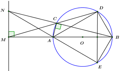 Ta có: \(MN \bot AB \Rightarrow \angle NMA = {90^0}\)