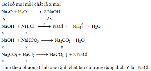 1. Hỗn hợp X gồm Na2O, NH4Cl, NaHCO3 và BaCl2 có số mol mỗi chất bằng nhau. Cho hỗn hợp X vào H2O (dư), đun nóng. Lọc, tách kết tủa thu được dung dịch Y.