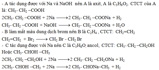 2. A, B, C là ba chất hữu cơ có công thức phân tử khác nhau và có các tính chất sau: