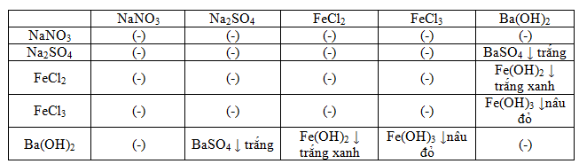 2. Không dùng thêm bất cứ hóa chất nào, hãy nhận biết các dung dịch sau bằng phương pháp hóa học: NaNO3; Na2SO4; FeCl2; FeCl3; Ba(OH)2.