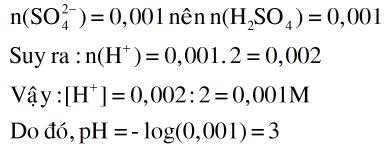2 lít dd H2SO4 có 0,001 mol SO42– có pH bằng.