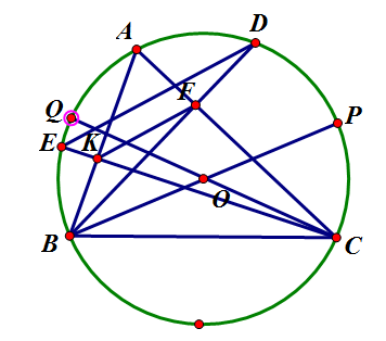 Cho tam giác ABC có 3 góc nhọn, nội tiếp trong đường tròn (O). Các đường cao BF, CK của tam giác ABC lần lượt cắt (O) tại D, E.