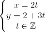 => x = 2t, vậy y = 2 - 2t - t = 2 - 3t