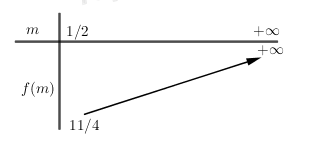 Dựa vào BBT của \(f\left( m \right)\) trên \(\left[ {\dfrac{1}{2}; + \infty } \right)\) ta tìm được GTNN của T bằng \(\dfrac{{11}}{4}\) khi \(m = \dfrac{1}{2}\).