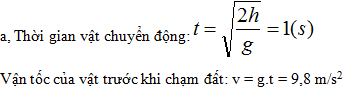 a) Một vật thả rơi từ độ cao 4,9 m xuống đất bỏ qua sức cản của không khí. Lấy gia tốc rơi tự do g = 9,8 m/s2. Vận tốc của vật trước khi chạm đất là bao nhiêu ?