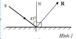 b) Xác định góc phản xạ và vẽ tia phản xạ IR ở hình 1.
