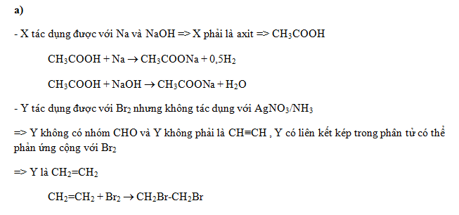 a) X, Y và Z là những hợp chất hữu cơ đều có 2 nguyên tử cacbon, thuộc các