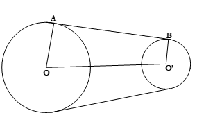 Em hãy tính độ dài của đoạn dây xích (dây sơn) AB trên hình, biết AB là tiếp tuyến chung ngoài của hai đường tròn (O) và (O’), OA = 15cm, O’B = 5cm, OO’ = 40cm (A, B là các tiếp điểm)