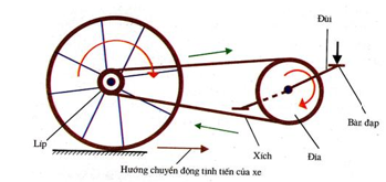 Xe đạp là một trong những phát minh quan trọng của con người. Nhiều bộ phận trong xe đạp có dạng hình tròn, nhờ vậy xe đạp bền dàng chắc và dễ dàng di chuyển. Bộ phận truyền động của xe đạp được minh họa như hình vẽ bên dưới.