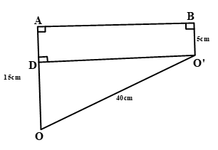 \(O'D=\sqrt{OO{{'}^{2}}-O{{D}^{2}}}=\sqrt{{{40}^{2}}-{{10}^{2}}}=\sqrt{1500}\approx 38.73cm\)