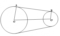 Em hãy tính độ dài của đoạn dây xích (dây sơn) AB trên hình, biết AB là tiếp tuyến chung ngoài của hai đường tròn (O) và (O’), OA = 15cm, O’B = 5cm, OO’ = 40cm (A, B là các tiếp điểm)