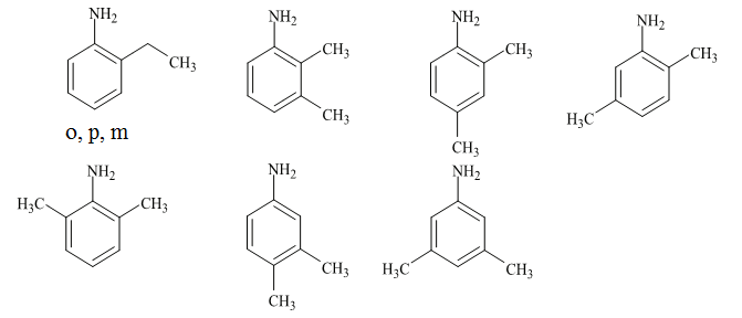 Amin X có chứa vòng benzen và có công thức phân tử là C8H11N. X có phản ứng thế H trong vòng benzen với Br2 (dd). Khi cho X tác dụng với HCl thu được muối Y có công thức dạng RNH3Cl. X có bao nhiêu công thức cấu tạo?