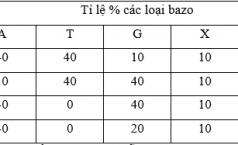 Axit nucleic có thể có dạng mạch kép (tx) hoặc dạng mạch đơn (xx). Bảng dưới đây cho thấy thành phần các bazo (nucleotit) của 4 mẫu nucleotit khác nhau