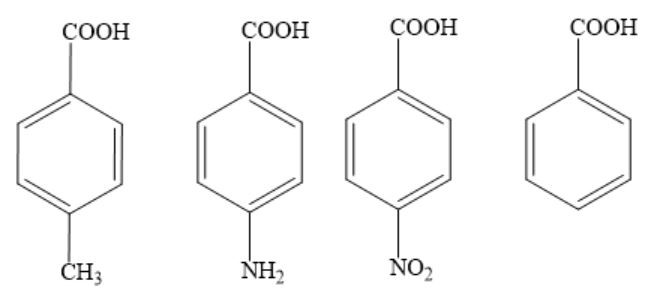 axit p-metylbenzoic (1) ; axit p-aminobenzoic (2) ; axit p-nitrobenzoic (3) ; axit benzoic (4)