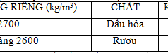 ( Cho bảng khối lượng riêng của một số chất như sau )