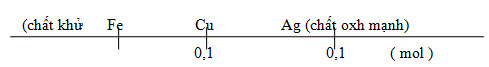 + Giả sử xảy ra cả phản ứng (1) và (2) thì khi đó chất rắn A gồm: 0,1 mol Ag và 0,1 mol Cu