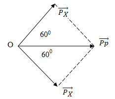Ta có: \(\overrightarrow {{p_p}} = \overrightarrow {{p_X}} + \overrightarrow {{p_X}} \)