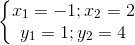 Tọa độ các giao điểm của (d) và (P): A (-1;1) và B (2;4)