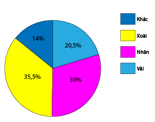 Biểu đồ dưới đây cho biết tỉ số phần trăm diện tích trồng các loại cây ăn quả ở một trang trại.