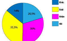 Biểu đồ dưới đây cho biết tỉ số phần trăm diện tích trồng các loại cây ăn quả ở một trang trại.