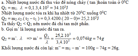 b/ Nếu không tan hết, tính khối lượng nước đá còn lại.