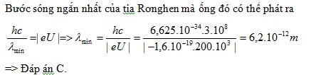Bước sóng ngắn nhất của tia Rơnghen mà ống đó có thể phát ra