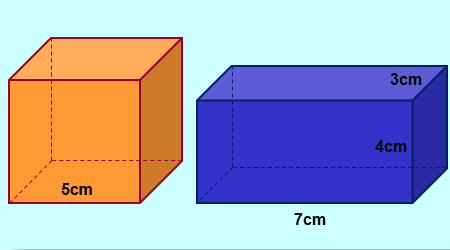 Cho hình lập phương và hình hộp chữ nhật có kích thước như hình vẽ: