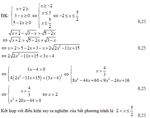 Định m sao cho : x2 – (3m – 2)x + 2m2 – 5m – 2 > 0 ; x ε R