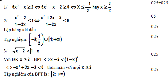Định m sao cho : x2 – (3m – 2)x + 2m2 – 5m – 2 > 0 ; x ε R