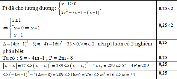 Định m sao cho : x2 – (3m – 2)x + 2m2 – 5m – 2 > 0 ; x ε R