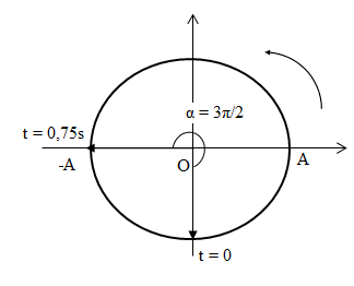 => Tại thời điểm t = 0,75 (s) chất điểm đang ở vị trí có li độ x = - A