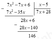 Vậy thương trong phép chia đa thức \(7{x^2} - 7x + 6\) cho đa thức \(x - 5\) có hệ số tự do là \(28\).