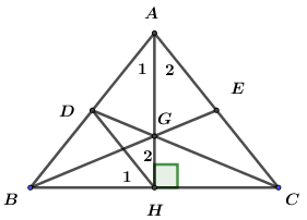 Do đó: đường trung tuyến BE đi qua điểm G, hay nói cách khác \(B,E,G\) thẳng hàng.