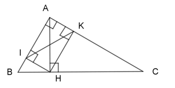 Cho \(\Delta ABC\) vuông tại A, đường cao AH. Gọi I và K lần lượt là hình chiếu của H lên AB và AC.