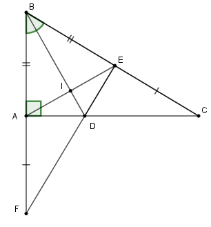 \( \Rightarrow IA = IE,\widehat {BIA} = \widehat {BIE}\)