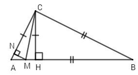 Cho \(\Delta ABC\) có \(\widehat C = {90^0}\), \(AC < BC\) , kẻ \(CH \bot AB\). Trên các cạnh AB và AC lấy tương ứng hai điểm M và N sao cho \(BM = BC,CN = CH\). Chứng minh: