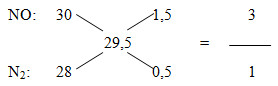 Đặt số mol của NO và N2 lần lượt là 3x và x (mol)