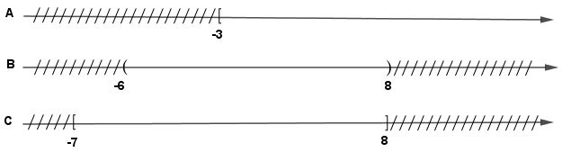 Cho 3 tập hợp A = [ - 3; + giới hạn );B = ( - 6;8 )  và C = [ - 7;8 ].  Chọn khẳng định đúng.