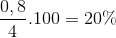 Cho 4 lít N2; 14 lít H2 vào bình phản ứng hỗn hợp thu được sau phản ứng có thể tích 16,4 lít (đktc). Hiệu suất của phản ứng tổng hợp NH3 là: