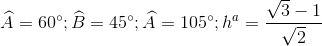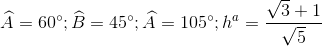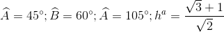 Cho , biết , b=2, . Tính các góc A, B, C và đường cao của tam giác.
