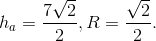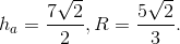 Cho , biết b=7, c=5, . Tính đường cao và bán kính đường tròn ngoại tiếp R của tam giác.