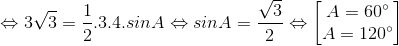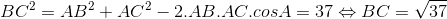 Cho có AB = 3, AC = 4 và diện tích S = . Tính BC.
