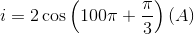 \(\eqalign{ & {i_1} = \sqrt 2 \cos (100\pi t - {\pi \over {12}})(A); \cr & {i_2} = \sqrt 2 \cos (100\pi t + {{7\pi } \over {12}})(A) \cr} \)