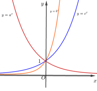 Cho ba số thực dương \(a,\,\,b,\,\,c\) khác 1. Đồ thị các hàm số \(y = {a^x},\,\,y = {b^x},\,\,y = {c^x}\) được cho trong hình vẽ bên. Khẳng định nào dưới đây đúng?