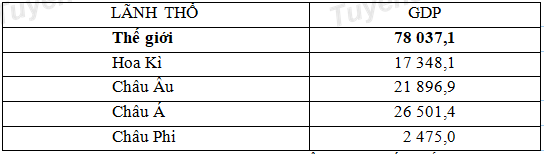 GDP CỦA THẾ GIỚI, HOA KÌ VÀ MỘT SỐ CHÂU LỤC KHÁC NĂM 2014